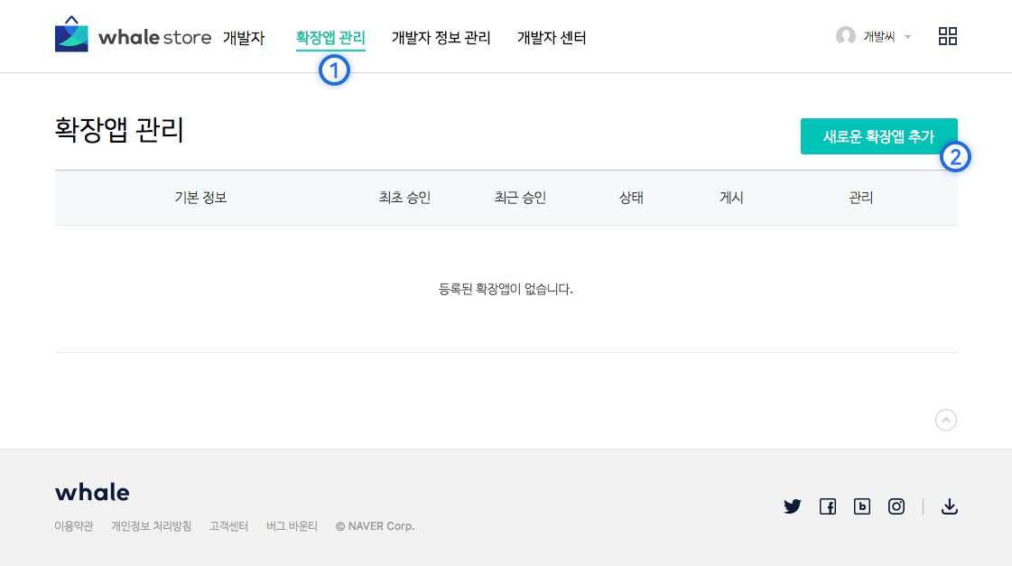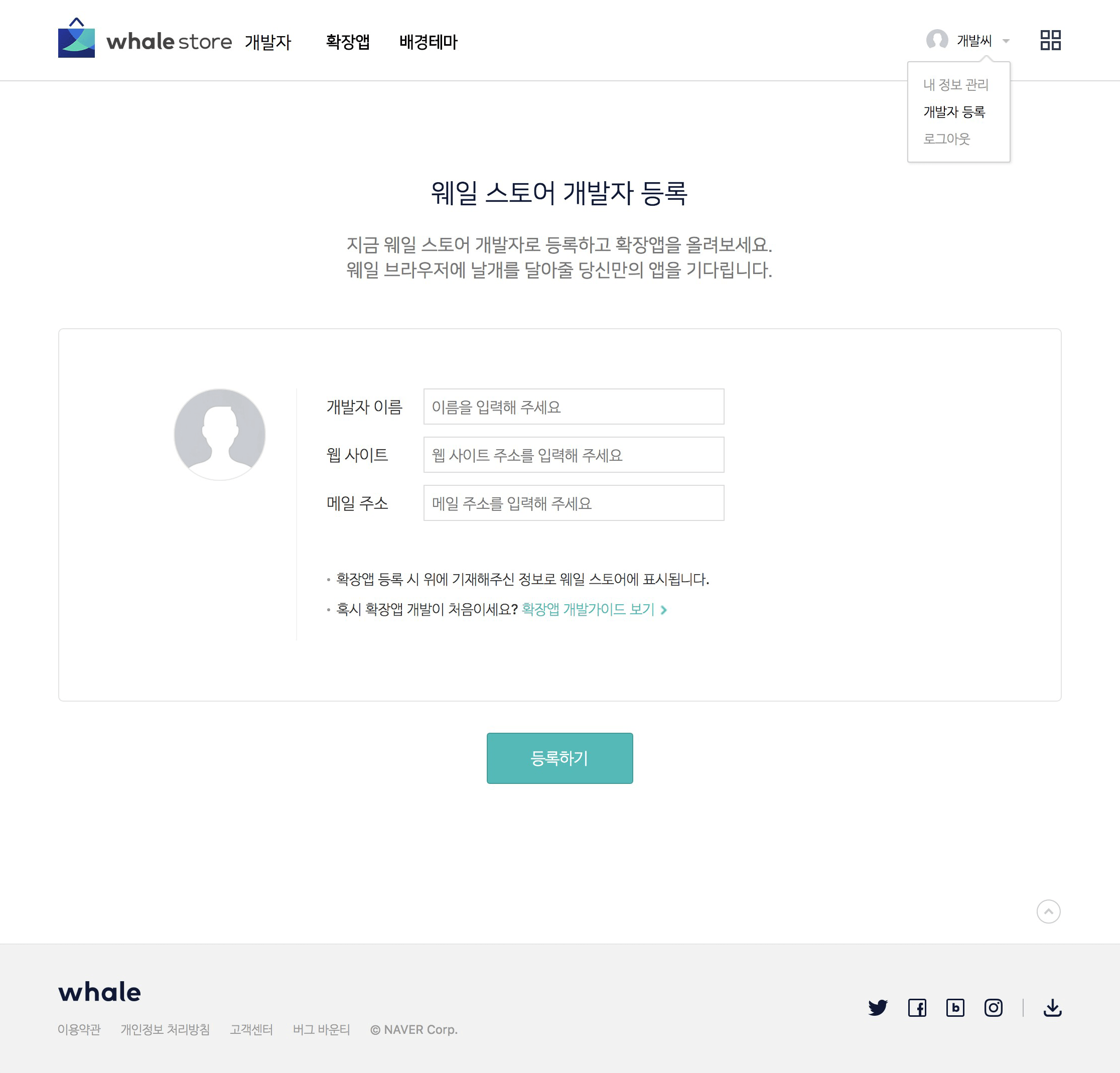 확장앱을 등록하기 전에 우선 아래와 같은 절차로 개발자 등록을 진행해야 합니다.